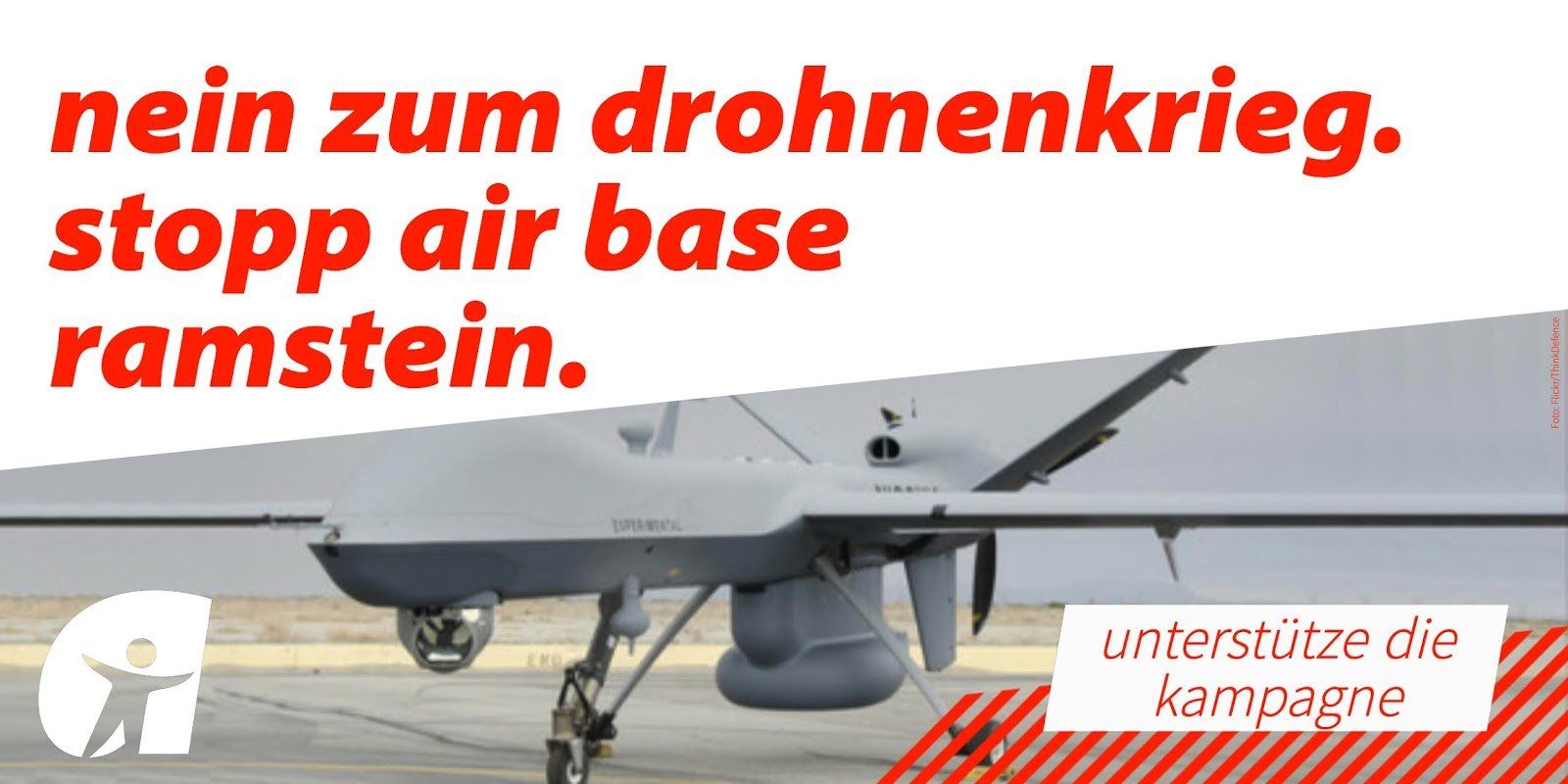»Der US-Militärstützpunkt Ramstein ist ein zentrales Drehkreuz für die Vorbereitung und Durchführung völkerrechtwidriger Angriffskriege. Die meisten tödlichen Einsätze US-amerikanischer Kampfdrohnen, u.a. in Irak, Afghanistan, Pakistan, Jemen, Syrien und Afrika, werden über die Satellitenrelaisstation auf der US-Air-Base Ramstein durchgeführt.