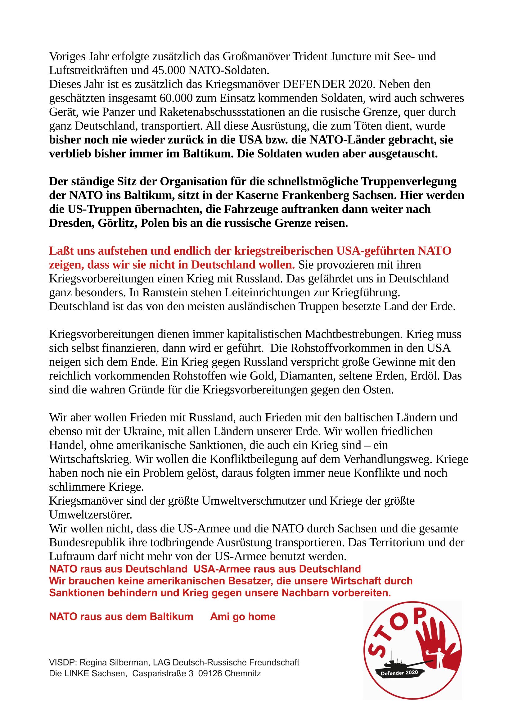 Wir verurteilen den militärischen Einmarsch Russlands in die Ukraine. Auch die Mitverantwortung der NATO für eine Entwicklung, die zu der aktuellen Situation beigetragen hat, rechtfertigen diese völkerrechtswidrige Handlungsweise nicht.