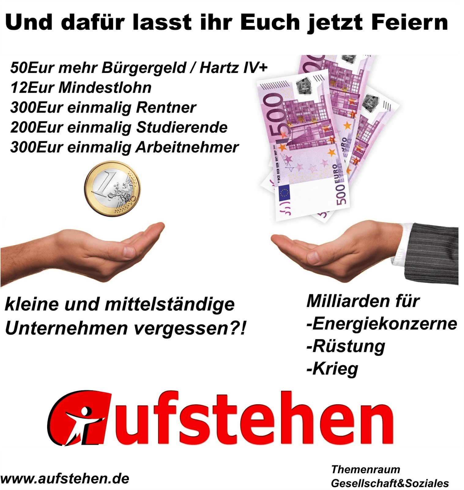 Ihren Song „war pigs“ beginnt die Rockband „Black Sabbath“ mit den Worten „Böse Gedanken, die Zerstörung planen, Konstrukteure vom Aufbau des Todes“. Konstruiert werden die todbringenden Werkzeuge von einem militärisch-industriellen Wirtschaftsgeflecht, das von der SPD/FDP/Grünen-Bundesregierung durch eine massive Geldspritze nachhaltig gefördert werden soll. Dazu dient das von Kanzler Scholz angekündigte Aufrüstungspaket in Höhe von 100 Milliarden Euro, das im Grundgesetz verankert werden soll, was eine entspechende Entscheidungsverpflichtung des Parlaments bedeutet. Zudem geloben die Regierungsparteien, den Militäretat auf 2 % und mehr zu erhöhen. Bei einer Wirtschaftsleistung von 3,57 Billionen Euro macht dies mehr als 71 Milliarden Euro aus. Fast 25 Milliarden mehr als im Jahr zuvor. Man muss sich die Größenordnung klarmachen: innerhalb eines Jahres sollen mehr als 170 Milliarden für neue Panzer, Kriegsschiffe und Kampfjets, die Atombomben transportieren sollen, ausgehändigt werden. Das wären umgerechnet mehr als 4000,- Euro für den Haushalt, in dem jeder von uns lebt. Gefeiert wird das Aufrüstungspaket natürlich von den Aktionären der Rüstungsindustrie. Die Aktie der Fa. Rheinmetall hatte am Tag der Unterzeichnung des Koalitionsvertrag am 07.12.2021 einen Wert von 82,98 €. Am 22.03.2022 war sie auf 182 € hochgeschnellt. Für das deutsche Wirtschaftsgefüge bedeutet dies alles einen massiven Ausbau des deutschen militärischen Industriekomplexes. Er bekommt einen noch größeren Einfluss auf politische Entscheidungen. Nur der Sozialhaushalt im Bundeshaushaltsplan 2022 sinkt um fünf Milliarden Euro (minus drei Prozent) gegenüber 2021. Diesen politischen Weg, den die Regierungsparteien einschlagen, lehnt „aufstehen-mittelsachsen“ entschieden ab. Für uns hat weiterhin die Finanzierung eines verbesserten Gesundheitswesens und die Beschneidung der hohen Energiepreise absoluten Vorrang.